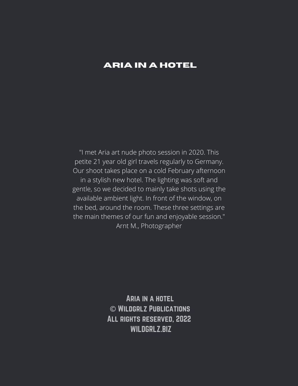 I met Aria for a art nude photo session in 2020. This petite 21 year old girl travels regularly to Germany. Our shoot takes place on a cold February afternoon in a stylish new hotel. The lighting was soft and gentle, so we decided to mainly take shots using the available ambient light. In front of the window, on the bed, around the room. These three settings are the main themes of our fun and enjoyable session. NSFW. Adults only.